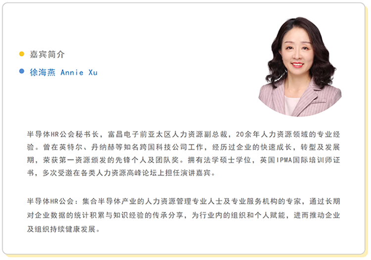 维多利亚老品牌VIC国际“行业瞭望”系列第八期邀请半导体HR公会秘书长,富昌电子前亚太区人力资源副总裁徐海燕女士,分享其关于集成电路行业人才招聘管理、培育、