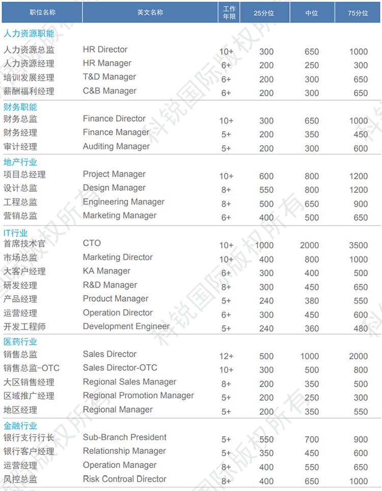 基本年薪*:以人民币1000元为单位,指年度整体的现金收入=年度底薪+年度固定部分奖金